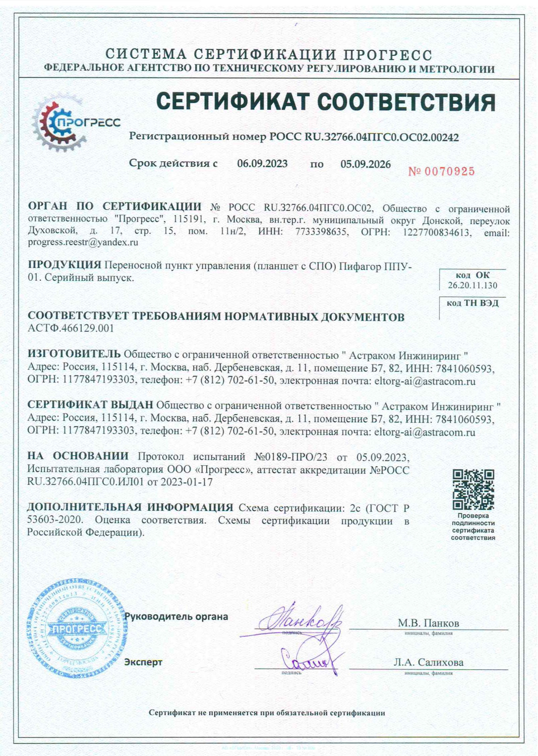 Переносной пункт управления (планшет с СПО) Пифагор ППУ-01. Серийный выпуск.